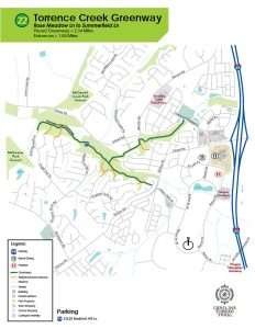 We recommend parking at Rosedale Nature Park and walking across Rosewood Meadow Lane to access the trailhead for North Branch Torrence Creek Greenway. You can also park in one of the neighborhoods with a connector trail.