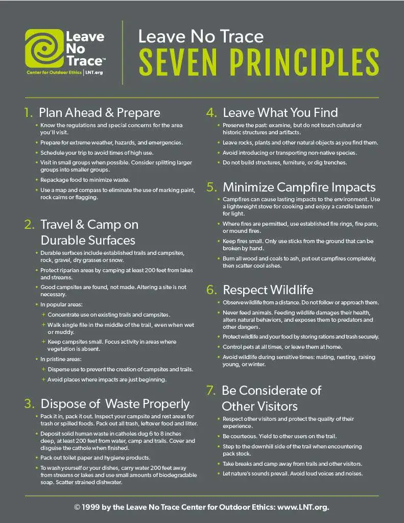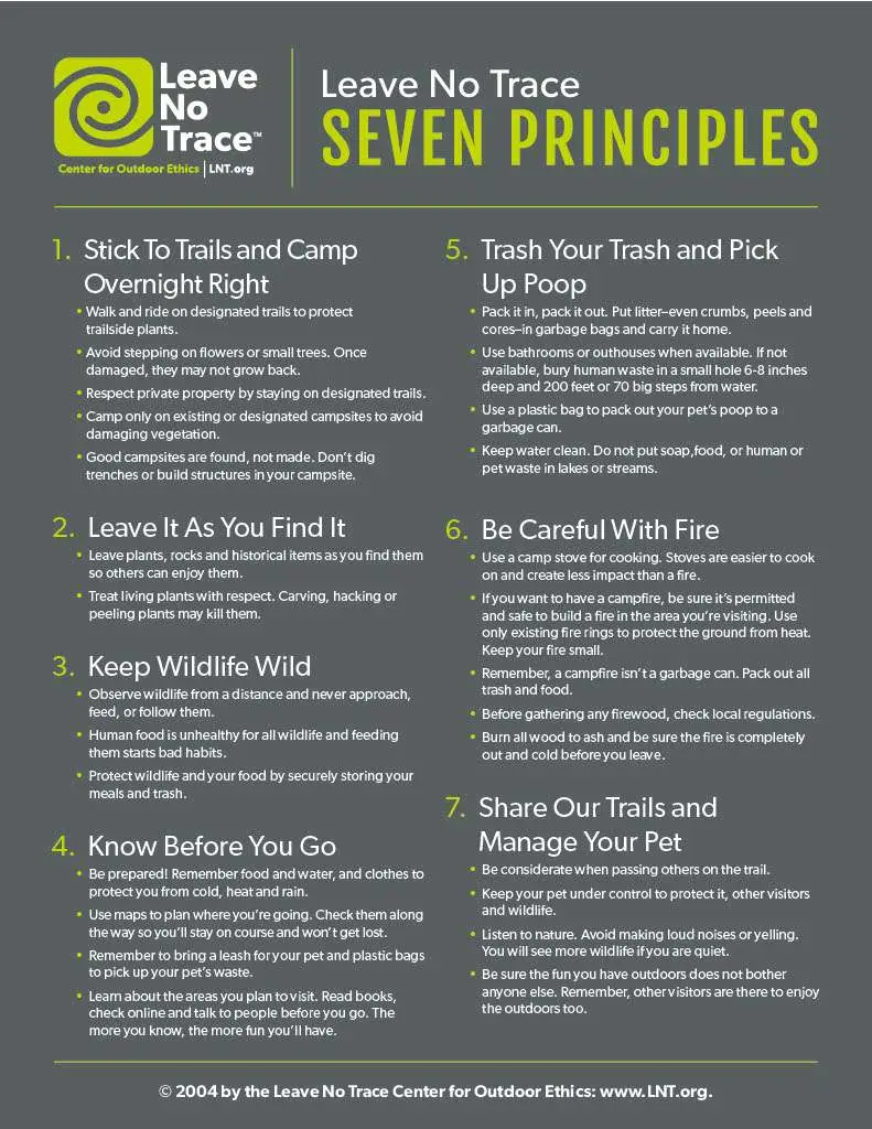Leave No Trace Awareness Workshop that covers the Seven Leave No Trace Principles, outdoor ethics, and the mission of the Center for Outdoor Ethics. Upon successful completion of a Leave No Trace Awareness Workshop, each participant will: