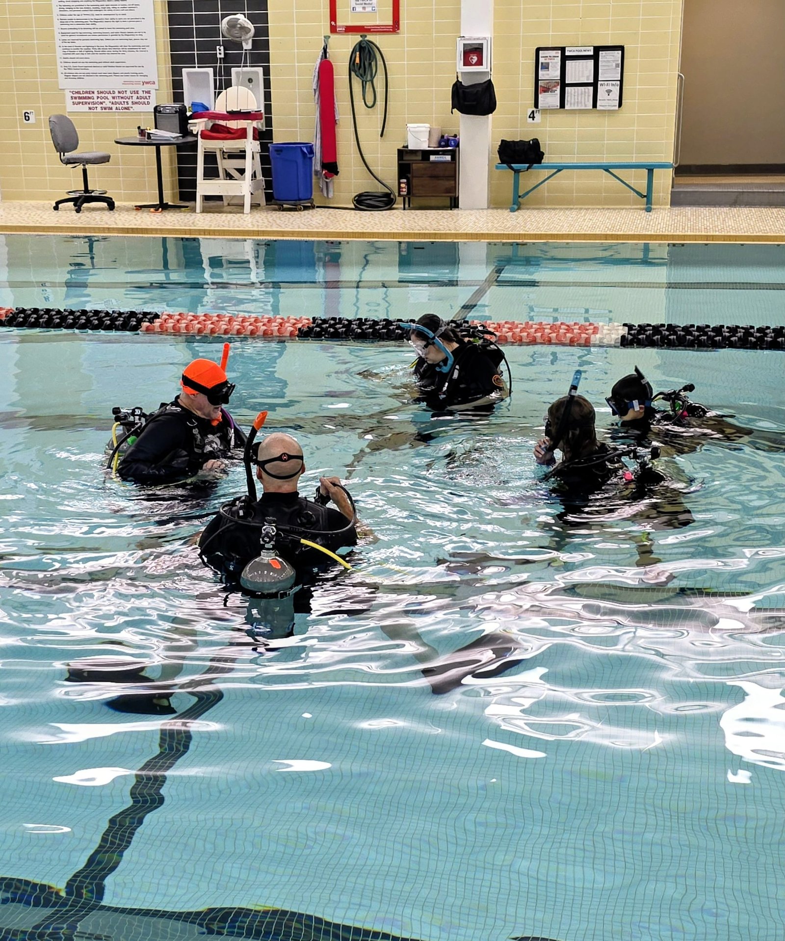 Ever dreamt of exploring the underwater world with a scuba tank? Dive into the fun with our playful scuba class! Our class is held in the shallow part of a swimming pool, in less than 4 feet of water, all under the watchful eye of certified dive Instructors. Get ready to see what scuba diving is all about! And guess what? We provide all the gear! Just bring your swimsuit, towel, and a T-shirt, and you’re good to go!
